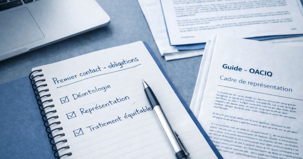 La différence est majeure. Être traité équitablement ne veut pas dire être conseillé stratégiquement. Être informé objectivement ne veut pas dire être défendu. Être accompagné dans certaines formalités ne veut pas dire que quelqu’un porte votre position dans la négociation. C’est précisément pour faire disparaître cette confusion que les règles ont été resserrées au Québec.
